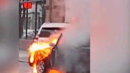 奥迪车街头自燃司机冒着大火回车内取东西 路人看得直冒冷汗