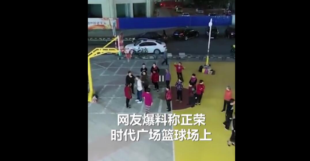 大妈占篮球场跳舞包围打球小伙 篮球场上不让打篮球