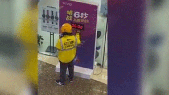 高手!外卖小哥商场内挑战6秒按键 一次成功后潇洒转身离开