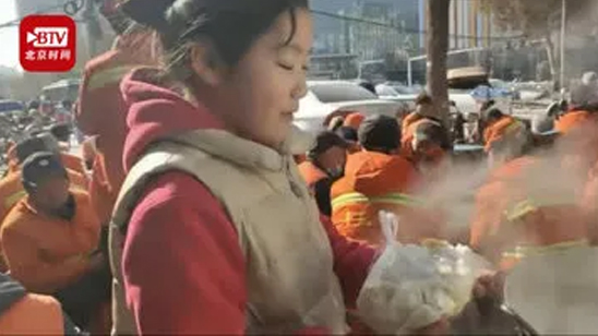 人美心更美!小梦露连续4年用压岁钱请环卫工人吃饺子元宵