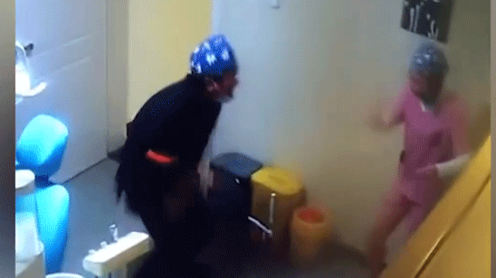 护士被夹到手痛得跳起来 男同事误以为她在跳舞下一幕笑翻网友