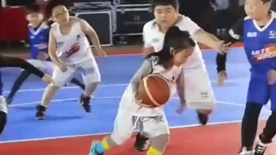 8岁篮球女孩和高年级男孩同场竞技 英姿飒爽丝毫不输