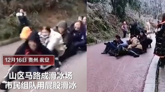 山区马路太滑市民组队用屁股溜冰:找回童年回忆