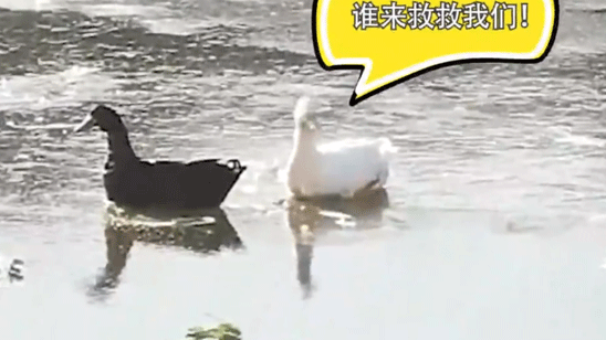 太冷了!大连一公园里鸭子被冻冰面上动弹不得