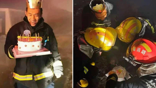 正要庆生警铃响了 蓝朋友灭完火原地唱响生日歌