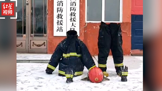 消防员零下38度训练衣服冻成铠甲 脱下的裤子可以站立