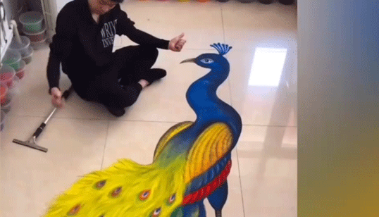 东北小伙在客厅地板创作动物3D沙画 网友:以为是特效,草率了