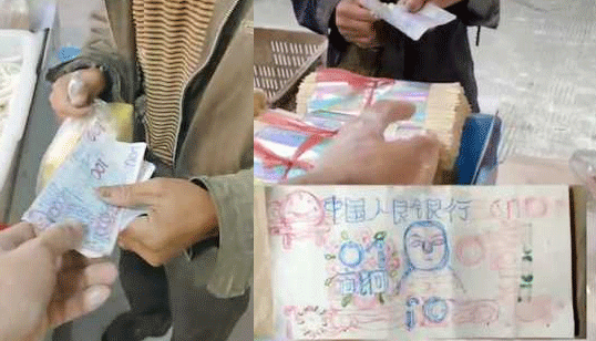 大爷拿手绘“人民币”买面8年 店主:送东西他不收