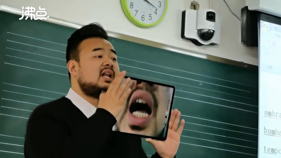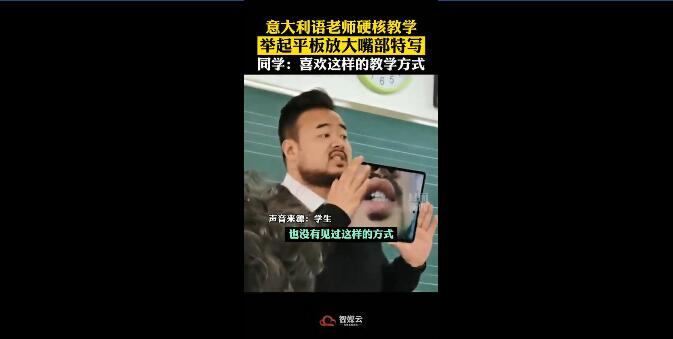 意大利语老师为教发音用平板放大嘴型 学生:氛围瞬间不一样