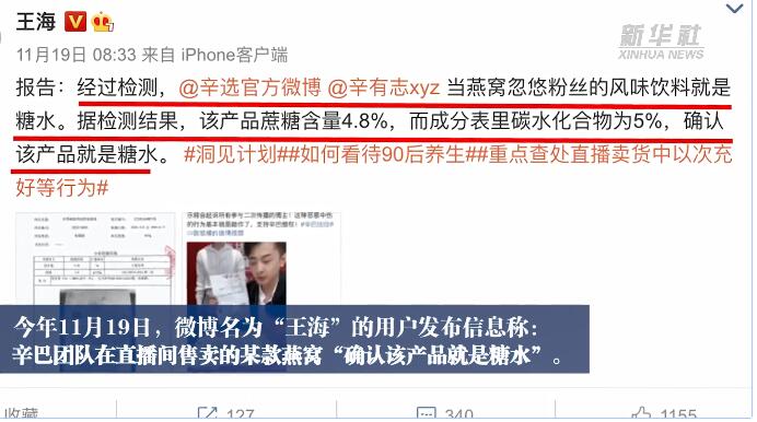 网红直播售卖燕窝“翻车” 事件正在进一步调查中