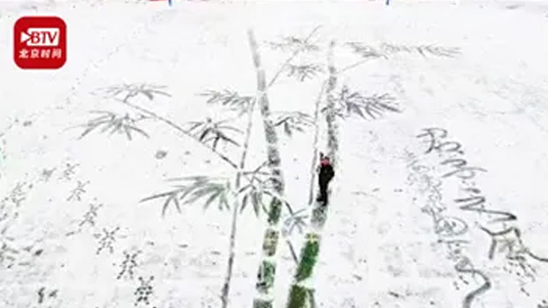 小学美术老师雪地中扫出巨幅雪竹图 网友:最强扫地僧