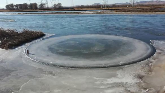 又大又圆!内蒙古一河面现直径10米冰盘缓缓旋转