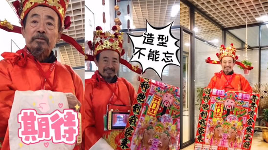 大爷cos财神向商家卖画 土味推销话术环环相扣逗乐网友