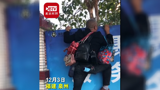 驾校教练挂一身学员包趴墙看科二考试 网友:像极老父亲送孩子到学校的场景