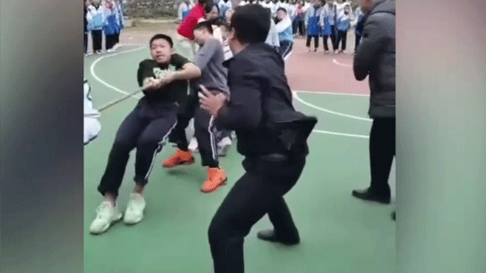 老师发“内功”给拔河比赛的学生加油鼓劲 网友:对手是笑输的