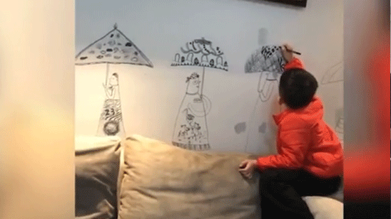孩子喜欢在家里的墙上涂鸦 母亲非但不阻止还特别支持结果惊艳了