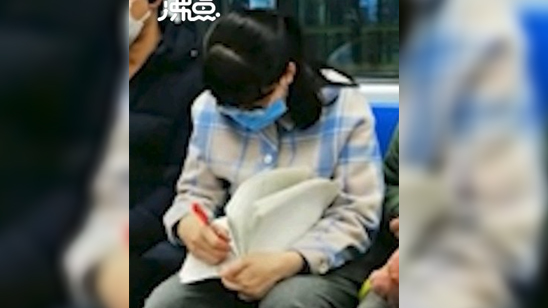 敬业!女老师地铁上批改学生试卷 无视身边嘈杂