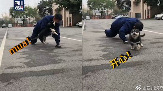 消防员做俯卧撑被狗狗偷亲后续:消防员表示被偷亲是日常