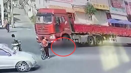 视野盲区!老人推车过马路被卡车撞倒 交警:被卷入车底当场死亡