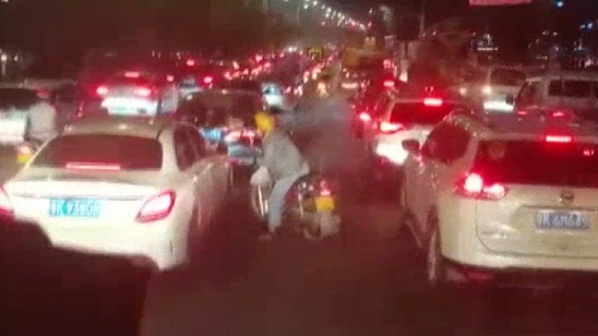 点赞!消防车出勤遇下班高峰 “摩托哥”逐一敲车窗提醒让行