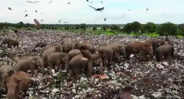 触目惊心!无人机拍下斯里兰卡象群垃圾场觅食