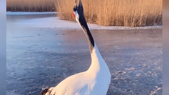 齐齐哈尔丹顶鹤在保护区中与人共鸣 声音空灵纯净犹如天籁之音