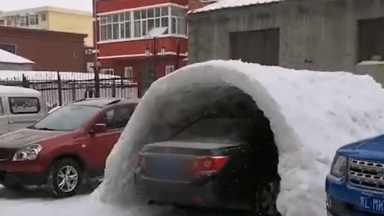 东北大哥在小区用雪堆车库 网友:硬是凿出了个一居室