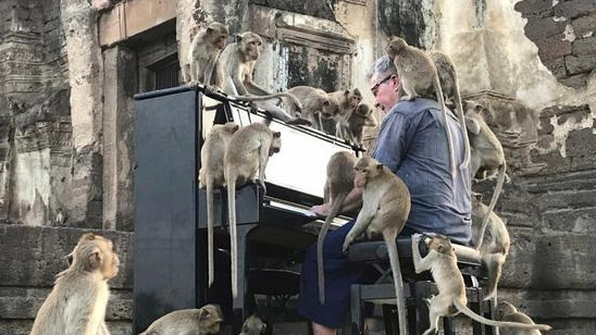 罕见!钢琴家在古迹为数百只猴子演奏音乐会