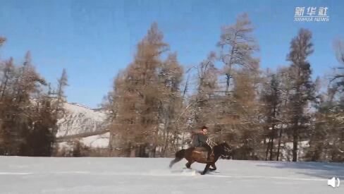 新疆哈巴河县:快递小哥雪地骑马送快递