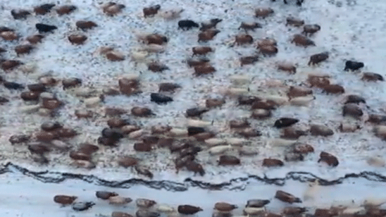 新疆17万头牲畜雪地转场迁徙 绵延数公里场面壮观