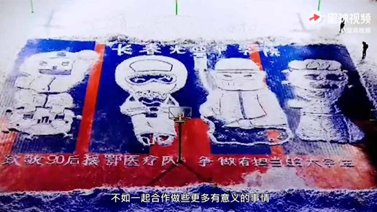 10小时集体创作!长春百名大学生雪地绘图致敬援鄂医疗队