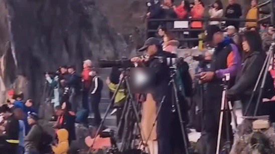 大爷大妈"打仗式"拍照如同攻城 现场统一指挥快门咔咔声不绝于耳
