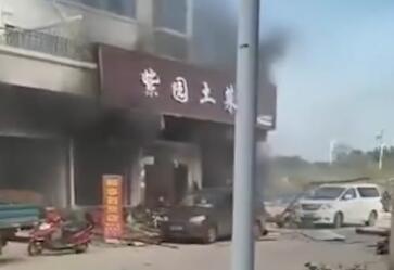 已致34人受伤!湖南汨罗一餐馆爆炸起火现场 门被炸飞到路上