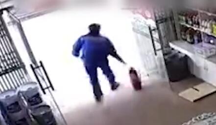 三轮车刚靠近加油机就自燃 他们提起灭火器直奔“火车”