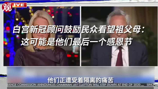 白宫疫情顾问鼓励民众看望祖父母:这可能是他们最后一个感恩节