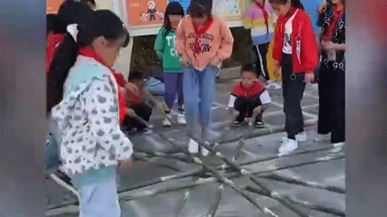 小学生课间游戏跳起竹竿舞 难度超高惊呆网友:看着都怕夹到jio