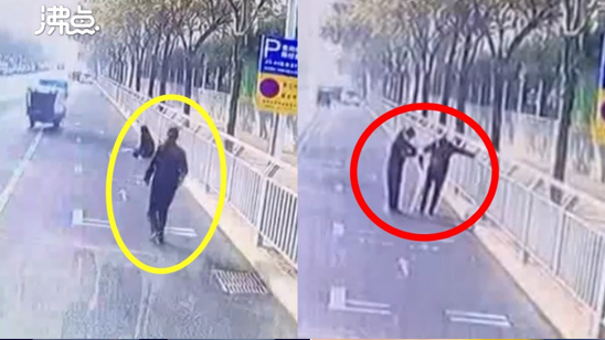 拄拐男子赶公交车不慎摔倒 女司机一路小跑下车搀扶