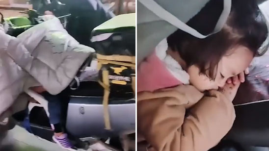 妈妈冒严寒带4岁女儿送外卖 取完餐发现女儿趴电动车上睡着了