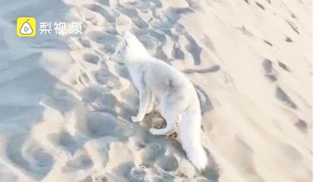 浅浅是你吗?月牙泉景区首现白狐,工作人员:游客不要和它过多接触