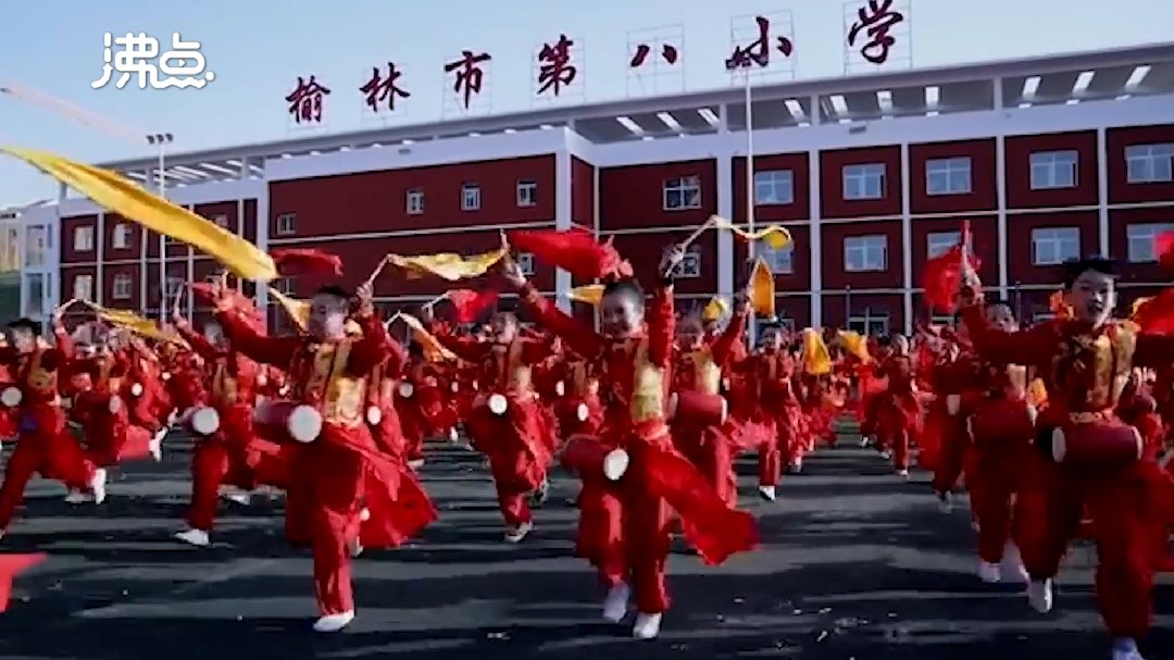 陕北小学400余名学生跳腰鼓版课间操走红:结合民俗还强身健体