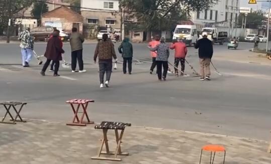 大爷大妈自制“吸钱”神器抢拾灵车散落硬币 见灵车路过冲到车流中间