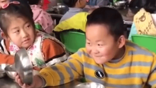 小朋友开饭前拿不锈钢盘子照镜子 不料被自己帅气的模样迷倒了
