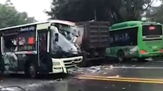 四川泸州公交与货车相撞 多人受伤