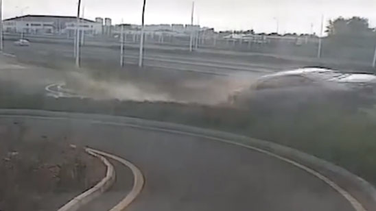 女子科目二考试误操作 整车冲出跑道腾空飞起 当场吓傻蹲地捂脸