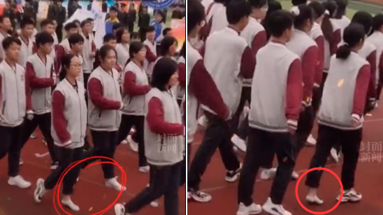 掉鞋不掉队!女生走方队鞋掉了淡定走完全程