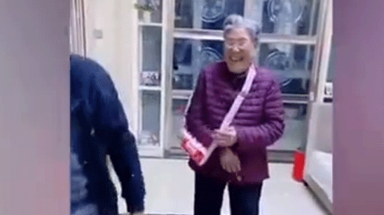 让人羡慕!爷爷送奶奶秋天第一款包包 奶奶笑到直不起腰