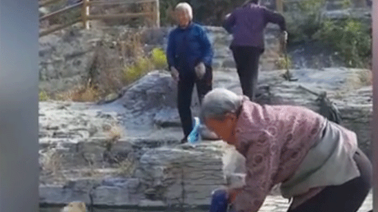 老奶奶河边洗衣服遭闺蜜恶作剧 网友:看到了多年后的我