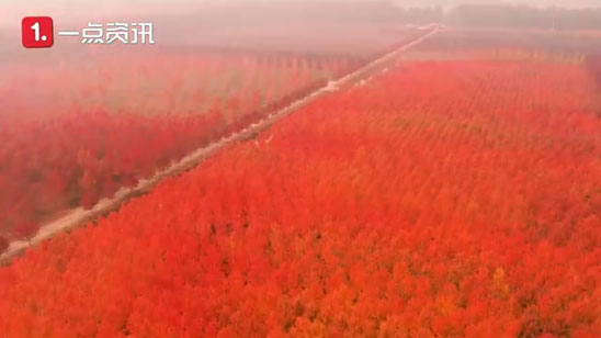 航拍山东3500亩枫林红疯了 风中摇曳仿佛红色海洋