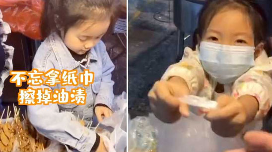 5岁女儿帮卖卤菜一个举动太贴心!妈妈:耳濡目染