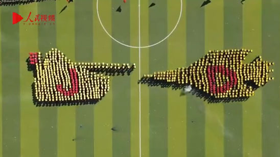 震撼人心!高校军训汇演学生头顶方块组动画